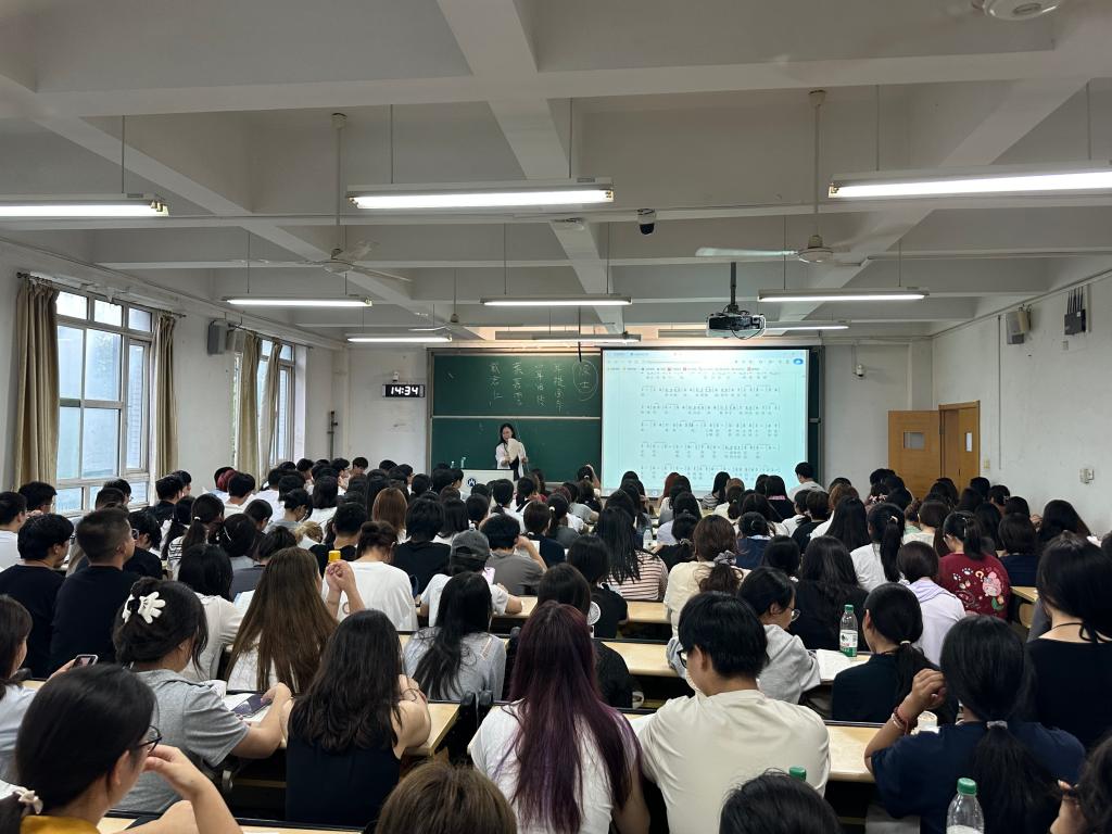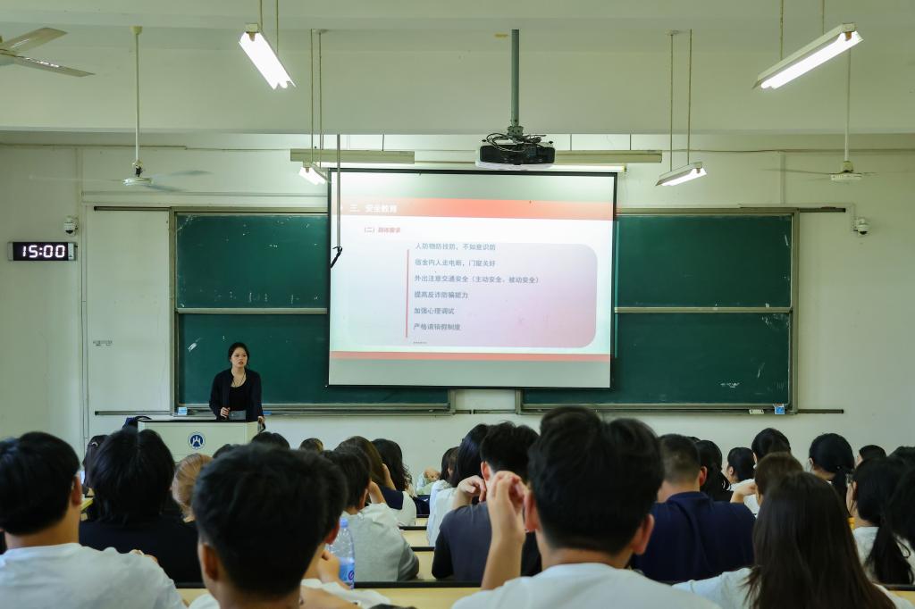 辅导员吕晓蕾和丁柯文围绕团组织建设、《学生手册》学习、学风建设与诚信教育等内容展开系统讲解,鼓励同学们勤奋向学、诚实守信,不断提升自我、服务集体。学院还特别关注新生的心理适应和人文素养培育。刘咏梅老师通过游戏互动和问卷调研等方式,引导大家识别情绪、掌握心理调适方法,并详细介绍了校院两级心理健康支持资源。李敬莲老师为新生开展美育专题教育,组织学唱校歌《梦想花开》,引导大家在歌声中感悟校史底蕴、增强集体认同。