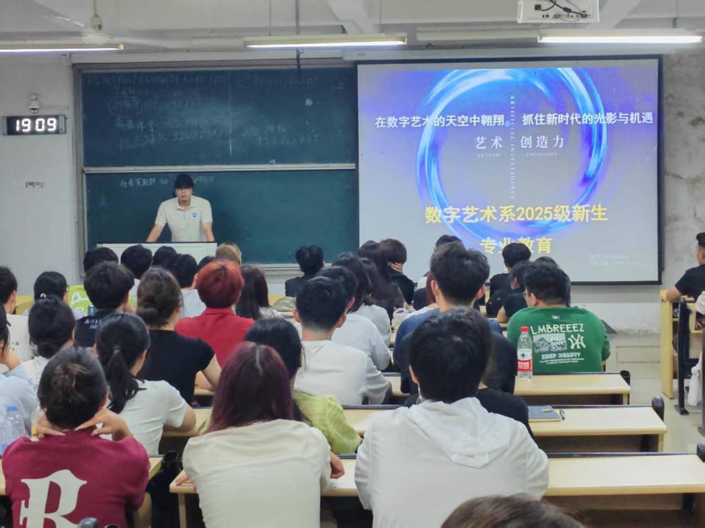 各系部分别举办了专业见面会,进一步加深新生对专业的理解。设计系主任袁硕老师强调了学习方法与创新实践的重要性,鼓励学生非功利性参赛、注重能力提升;马熙逵老师通过校际专业对比,突出本专业的可持续性与创新特质,并对留学路径进行了分析。美术系主任杨宁老师解析了“艺术+财经”跨学科体系,石以品老师分享了艺术市场化的研究成果,强调专业身份与课外拓展并重,张翼飞老师和李金轩老师则勉励同学们勤学善思、热爱专业与生活。数艺系主任马洪骥强调了夯实基础、跨界学习和紧跟时代的重要性;研究生导师高远也为新生介绍了硕士培养方案。